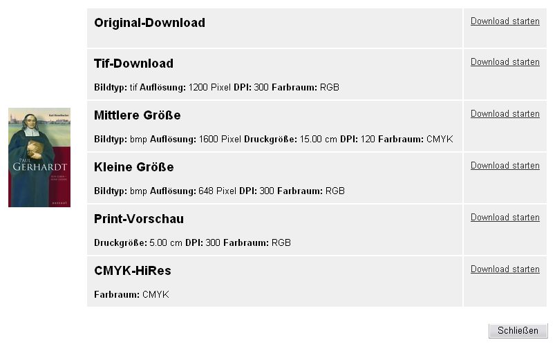 Diese Funktion ermöglicht es ein Bild in verschiedenen Auflösungen und Formaten herunterzuladen.