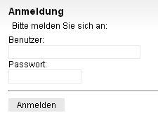Dieser erscheint immer dann, wenn sich der Benutzer noch nicht am System angemeldet hat. Nach erfolgreicher Anmeldung wird dieser Block ausgeblendet.