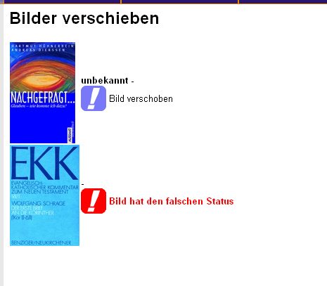 Alle für den Transfer ausgewählten Bilder werden in einem neuen Fenster angezeigt. Zusätzlich wird zu jedem Bild angezeigt ob das Bild erfolgreich verschoben wurde oder warum es nicht verschoben werden konnte.